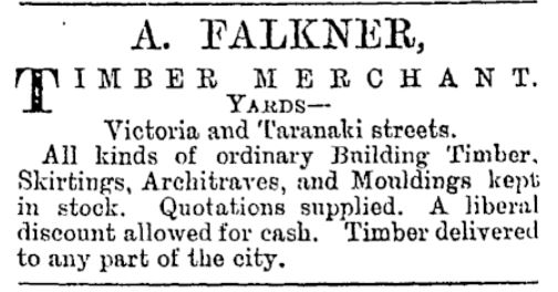 Capitalising on the huge number of trees which needed clearing, about 1895 Alfred established a sawmill on the property and opened a timber yard on the corner of Victoria and Taranaki Streets in Wellington, to process the timber for sale. The yard operated until about 1901 and the sawmill was destroyed by fire in 1906.