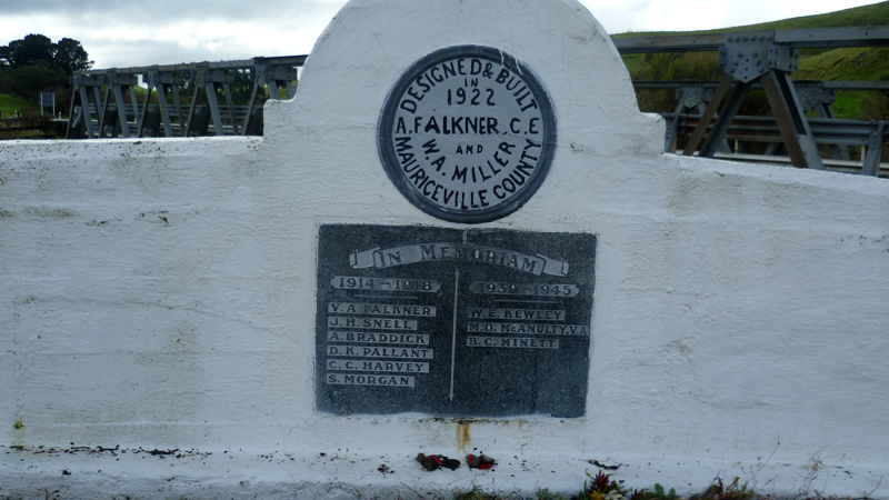 The Bridge was opened December 1st 1922, with the memorial tablet being unveiled on ANZAC Day 1923.
