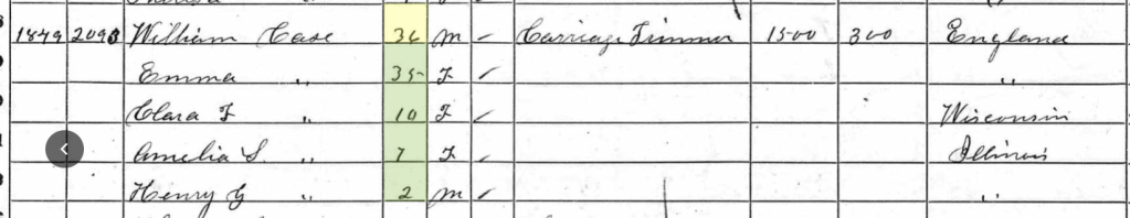 William Tierney Case became a coach trimmer, an allied trade to his brother Henry (the tailor) and directly related to his father’s trade of lace and fringe-making. Coach trimmers worked for coach or carriage builders and generally began work once the carriage was painted or varnished. They were skilled craftsmen, wielding awl, needles, glue, pins and tacks and employed patterns, knives, scissors to cut all types of cloth and leather, selecting from stocks of cord, rolls of coach lace and thread. They needed general carpentry skills and did upholstering as well as curtains, ceiling, door and floor coverings. William married Emma Neale in 1849 at St Paul’s Covent Garden. A month later, he and Emma emigrated to the United States, landing at New York. They briefly lived in Milwaukee, Wisconsin, before making Chicago, Illinois their permanent home.