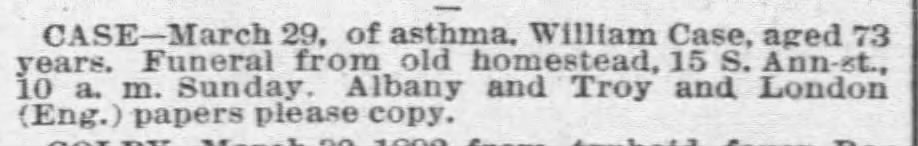 When William’s daughter Clara (Case) Ewen died in 1942 in Chicago, her obituary finally made mention of her father and his unique claim to fame.