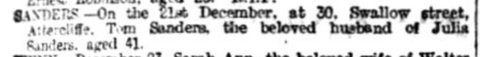 Dick’s father Tom died 21 December and was buried Christmas Eve 1893. He was just 41 years of age.